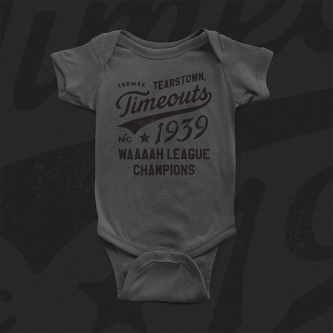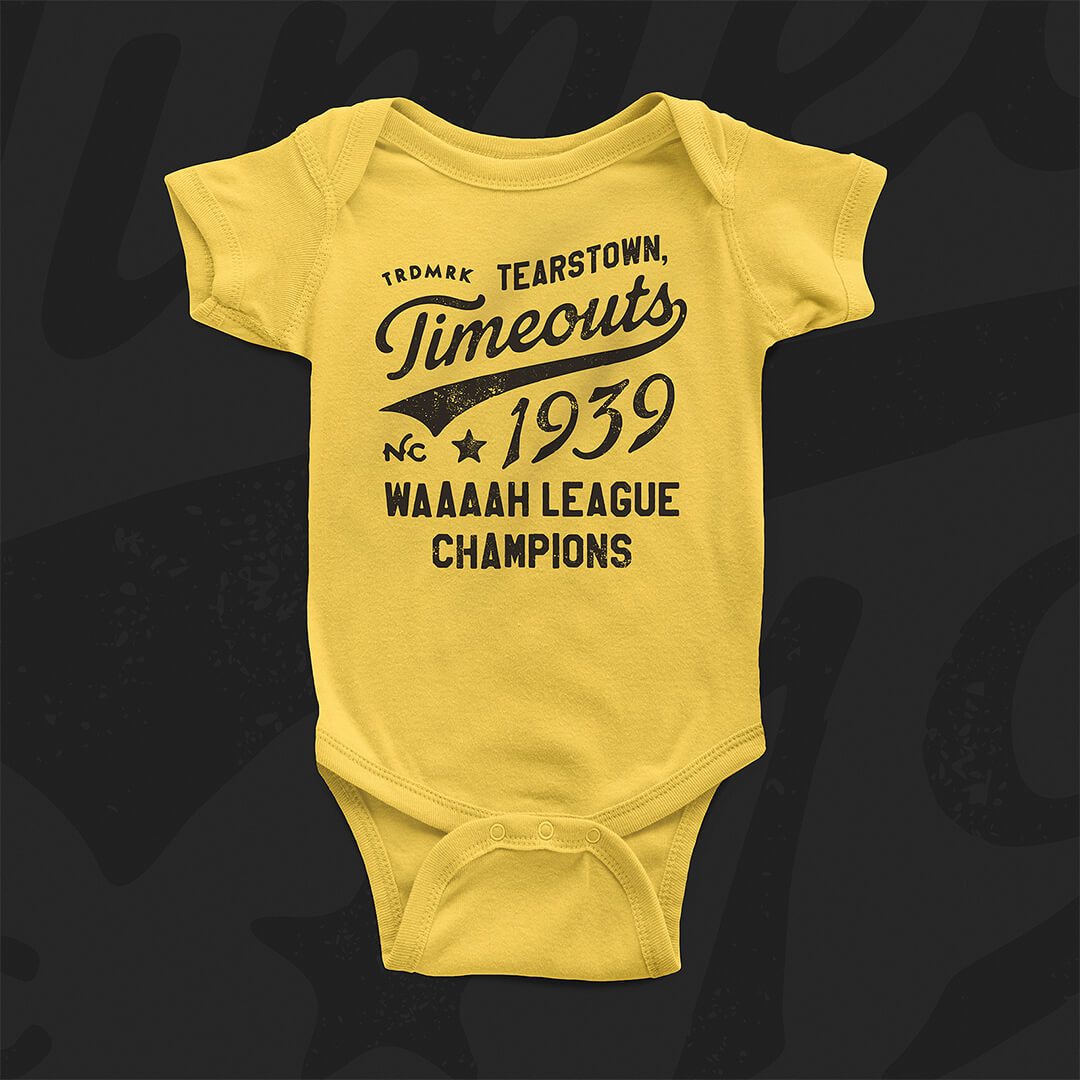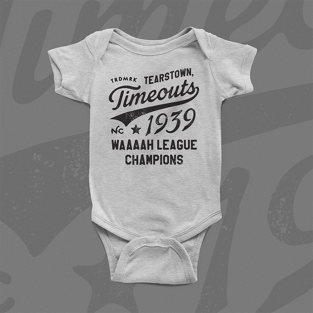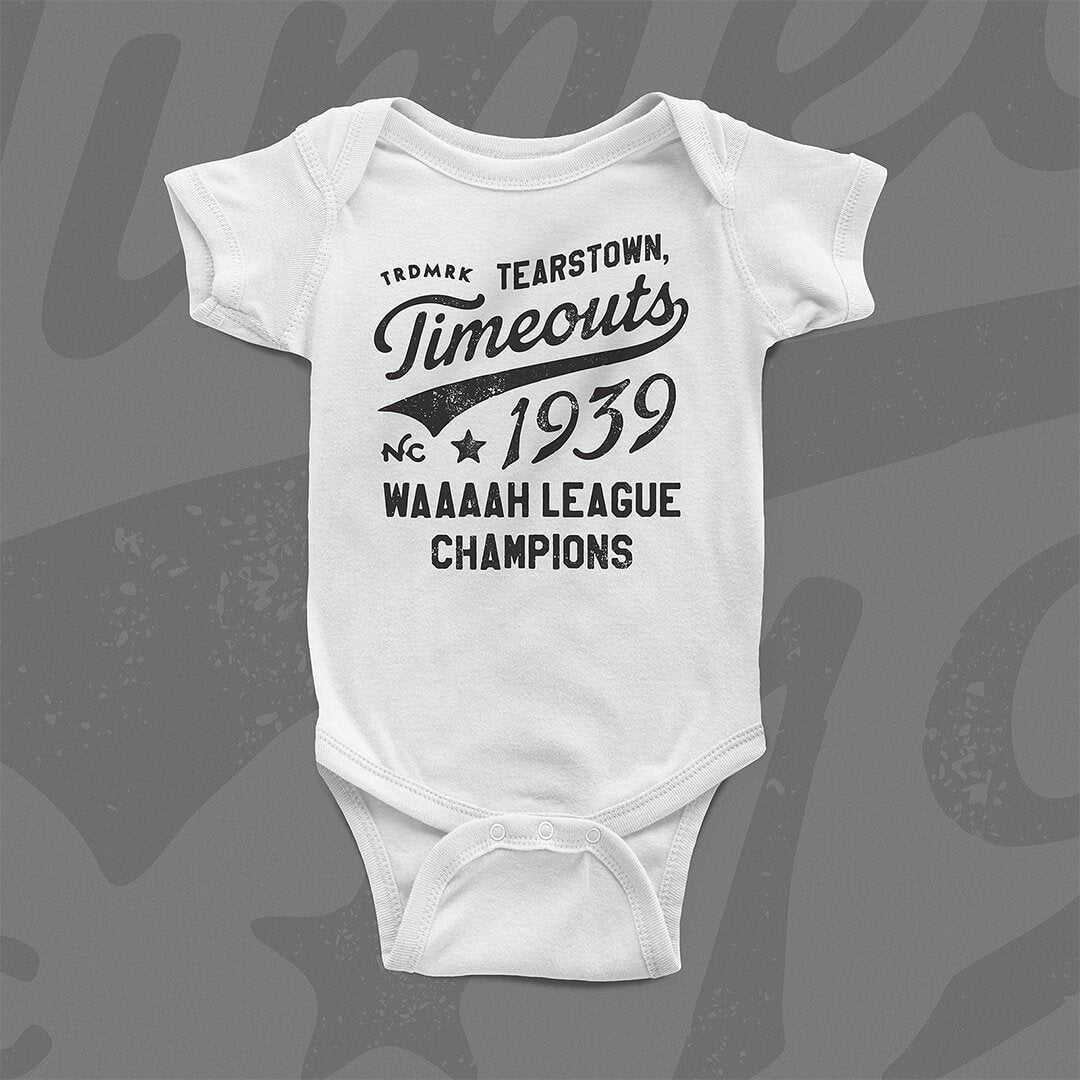 Tearstown Timeouts, 1939 Waaaah League Champs! Our toddler tees & baby bodysuits are made of 100% fine ring-spun cotton ensuring a smooth touch and comfy fit. Not intended for sleepwear. Remove child before washing.