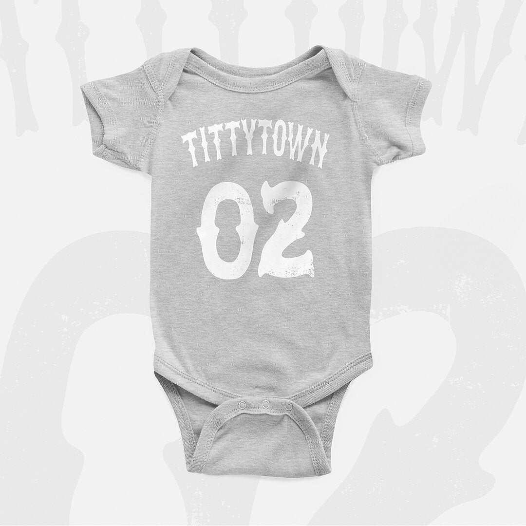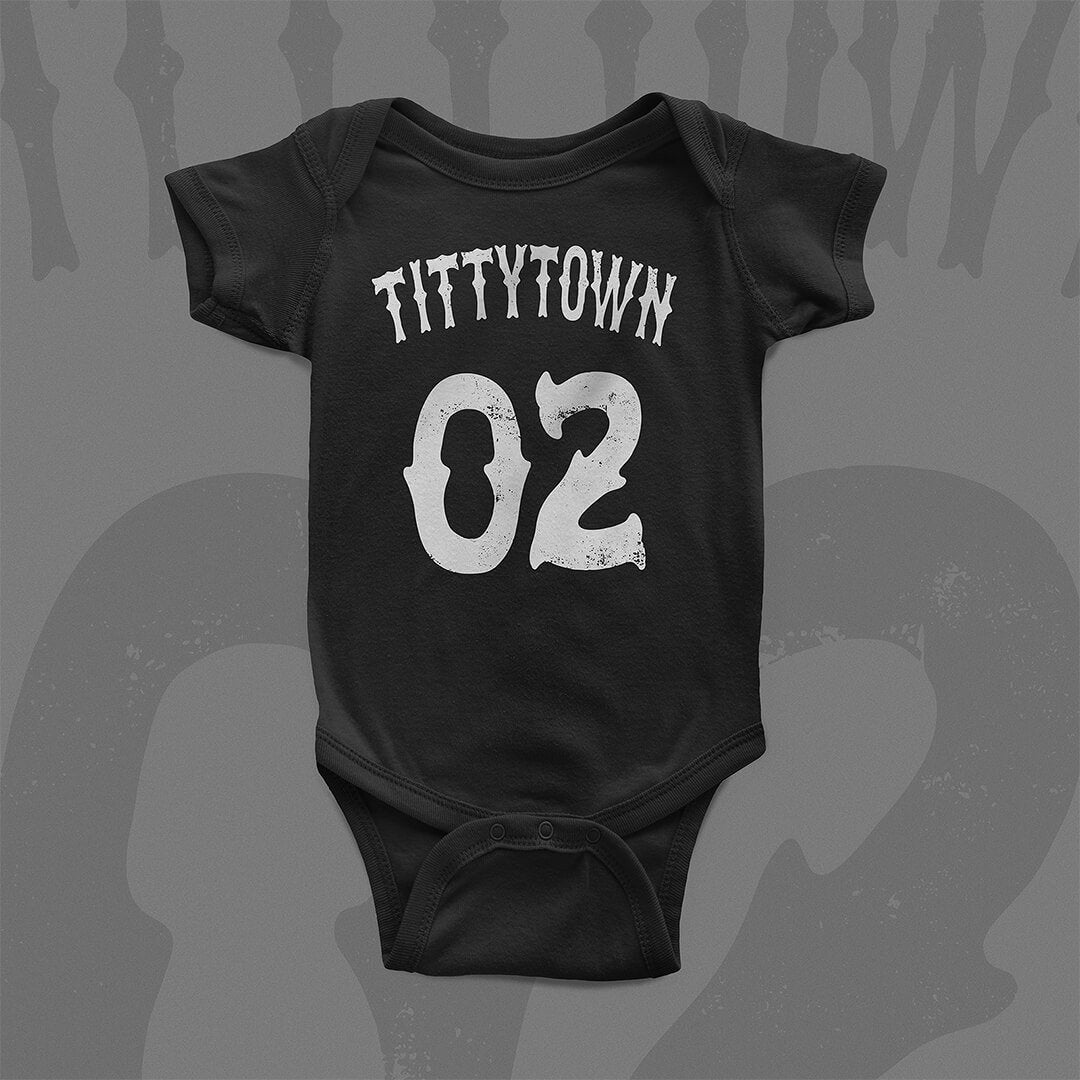 Tittytown - 02, guess who's on deck, again. Our toddler tees & baby bodysuits are made of 100% fine ring-spun cotton ensuring a smooth touch and comfy fit. Not intended for sleepwear. Remove child before washing.