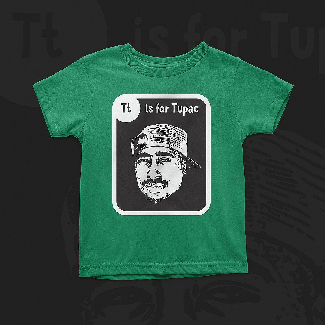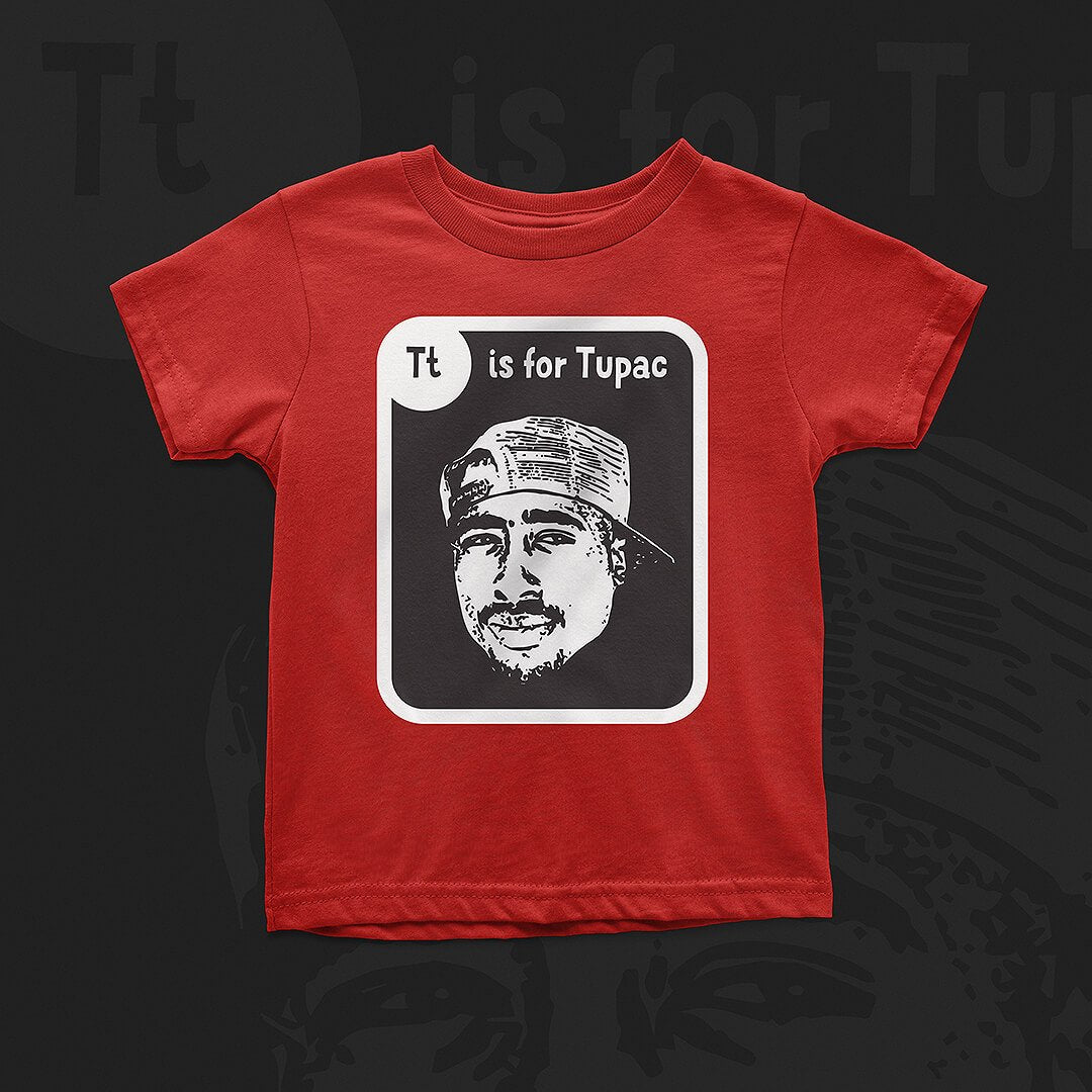 T is for Tupac Flashcard, the ABC's of hip hop. Our toddler tees & baby bodysuits are made of 100% fine ring-spun cotton ensuring a smooth touch and comfy fit. Not intended for sleepwear. Remove child before washing.