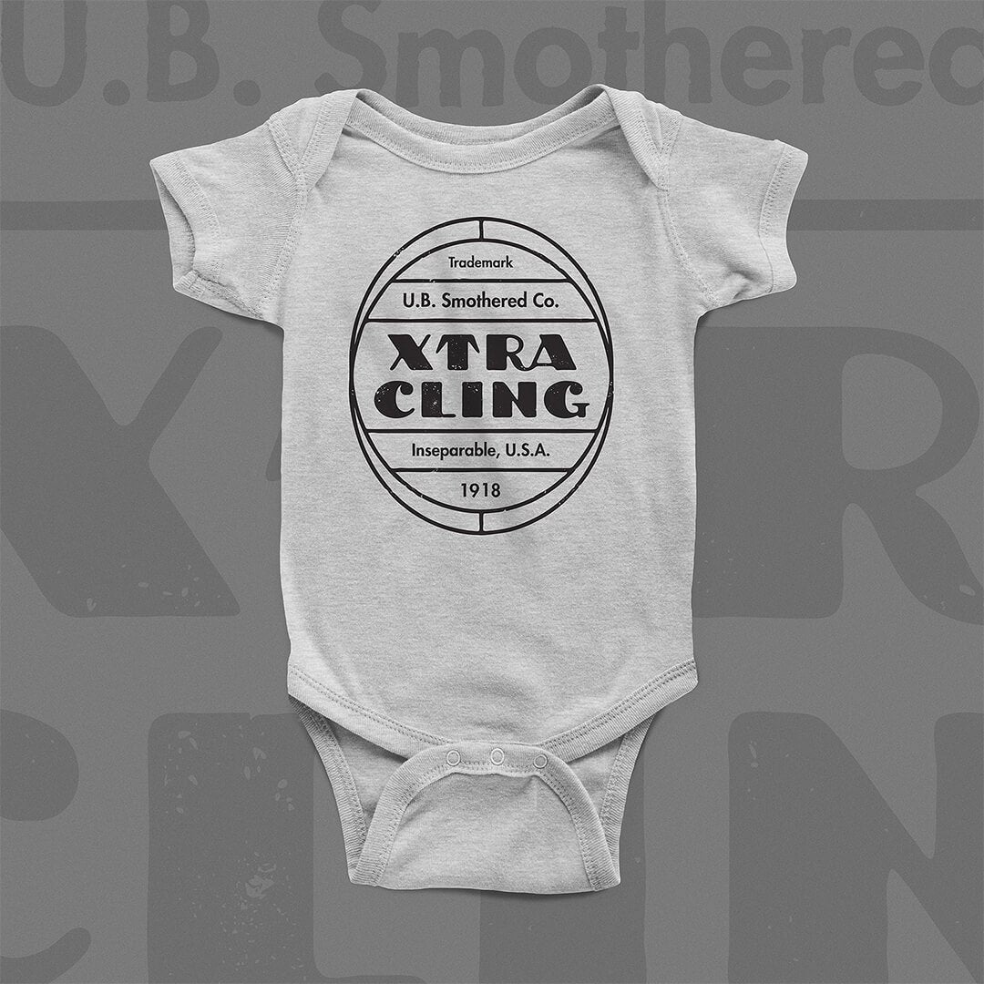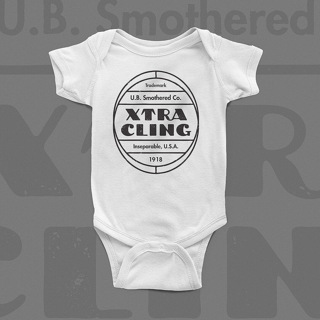XtraCling, since 1918 - developed by the U.B. Smothered Company out of Inseparable, USA is the perfect shirt for all the stage five clingers you know. Our toddler tees & baby bodysuits are made of 100% fine ring-spun cotton ensuring a smooth touch and comfy fit. Not intended for sleepwear. Remove child before washing.